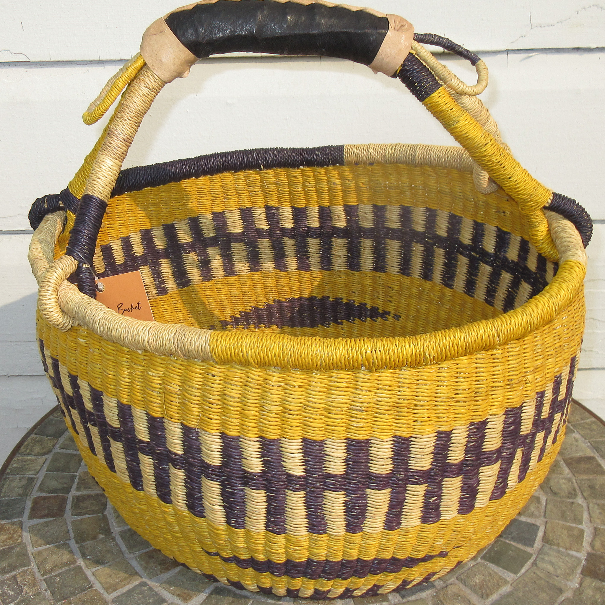 Our fair trade Bolga baskets are made in the Bolgatanga region of northern Ghana in West Africa. Bolga baskets are among the best known African baskets because of their versatility and durability. They are woven from elephant grass, which grows abundantly in the area, and the leather handles are made from local goat skin. The basket export industry is a critical source of income for the weavers, especially when harvests are poor. Bolga baskets are also sustainable products, and their production has a minimal impact on the environment. Last but not least, buying an African basket helps traditional craftsmanship to flourish.