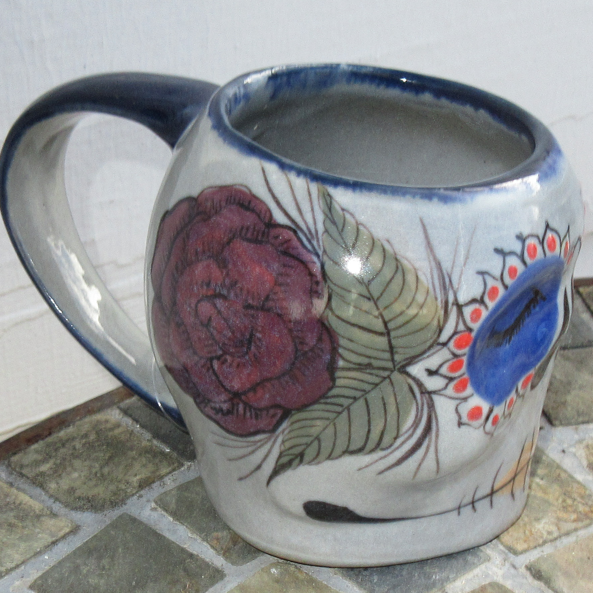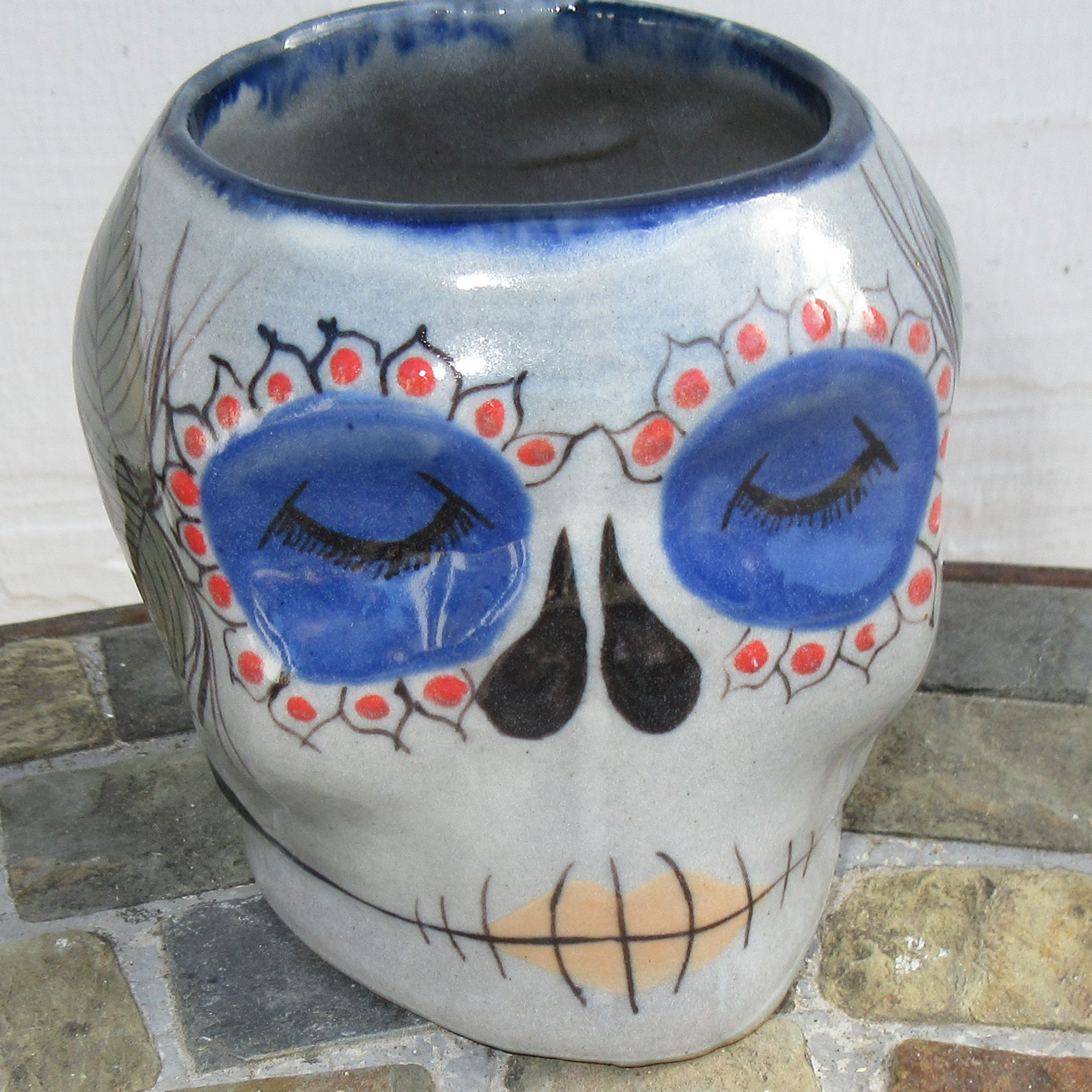 Observe Día de los Muertos with this beautiful fair trade sugar skull mug. This handmade Day of the Dead mug is made of hand painted ceramic, holds 10.5 ounces, is lead free and dishwasher safe. If you order this mug, you will receive the exact one seen in the image. Made by hand in Guatemala.