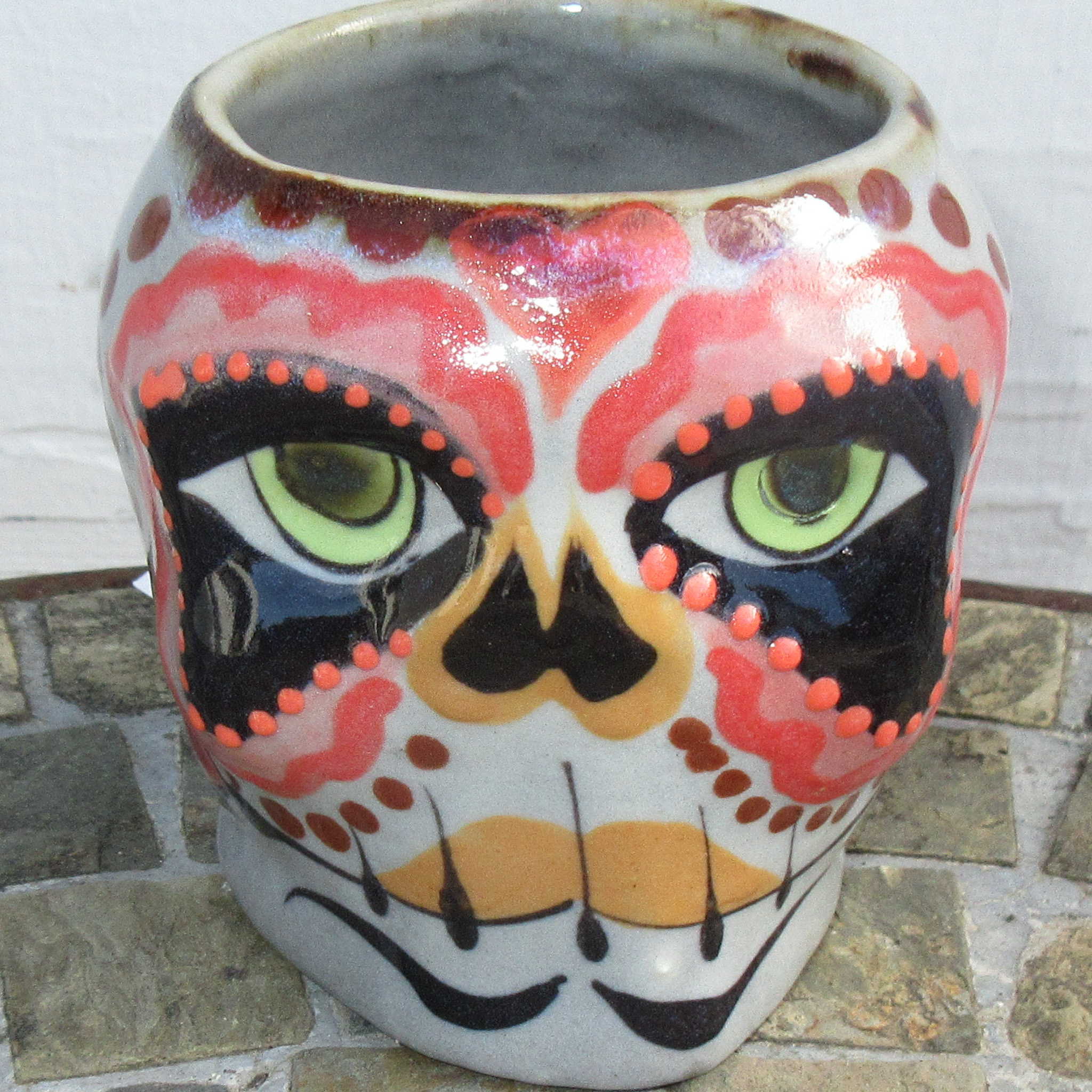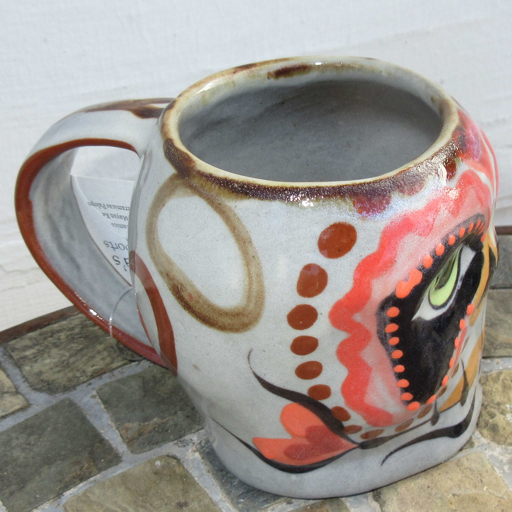 Celebrate Day of the Dead with this beautiful fair trade sugar skull mug. The mug is made of hand painted ceramic, holds 10.5 ounces, is lead free and dishwasher safe. If you order this mug, you will receive the exact one seen in the image. Made by hand in Guatemala.